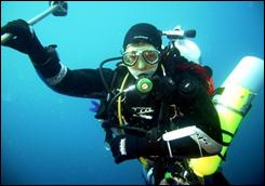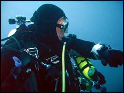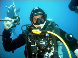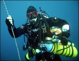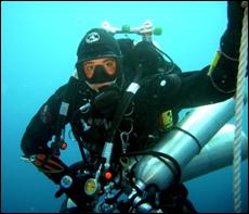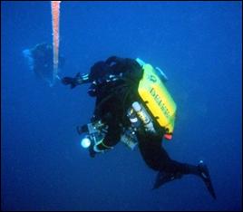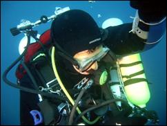L’IMMERSIONE L’Heinkel giace rovesciato su un fondale limaccioso a circa 60 metri di profondità. L’immersione non ha presentato particolari difficoltà; l’assenza di corrente e l’impeccabile organizzazione logistica predisposta dallo staff di Pianeta Blu (stazioni decompressive con bombole ossigeno, cime zavorrate sotto l’imbarcazione per lo stazionamento, pedagno sul relitto, etc) ci hanno notevolmente agevolato. Anche la visibilità sul fondo era sufficiente all’esplorazione, ma un po’ meno alle riprese fotografiche (almeno con la nostra attrezzatura). Per quanto ci riguarda, la scelta dei gas è stata: miscela di fondo TMX 20/30, Ean 36 e Ossigeno per la decompressione. I primi a scendere in acqua sono Lorenzo e Gianluca per approfittare delle migliori condizioni per le riprese, seguiti a ruota da Silvia e Simone.