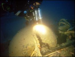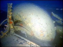 Anche i motori, ad eccezione delle eliche, sono ben riconoscibili; tubi, raccordi e l’ogiva dell’elica si sono ormai ambientati al nuovo elemento: nati per l’aria sopravvivono ormai da tempo nell’acqua di Mare.